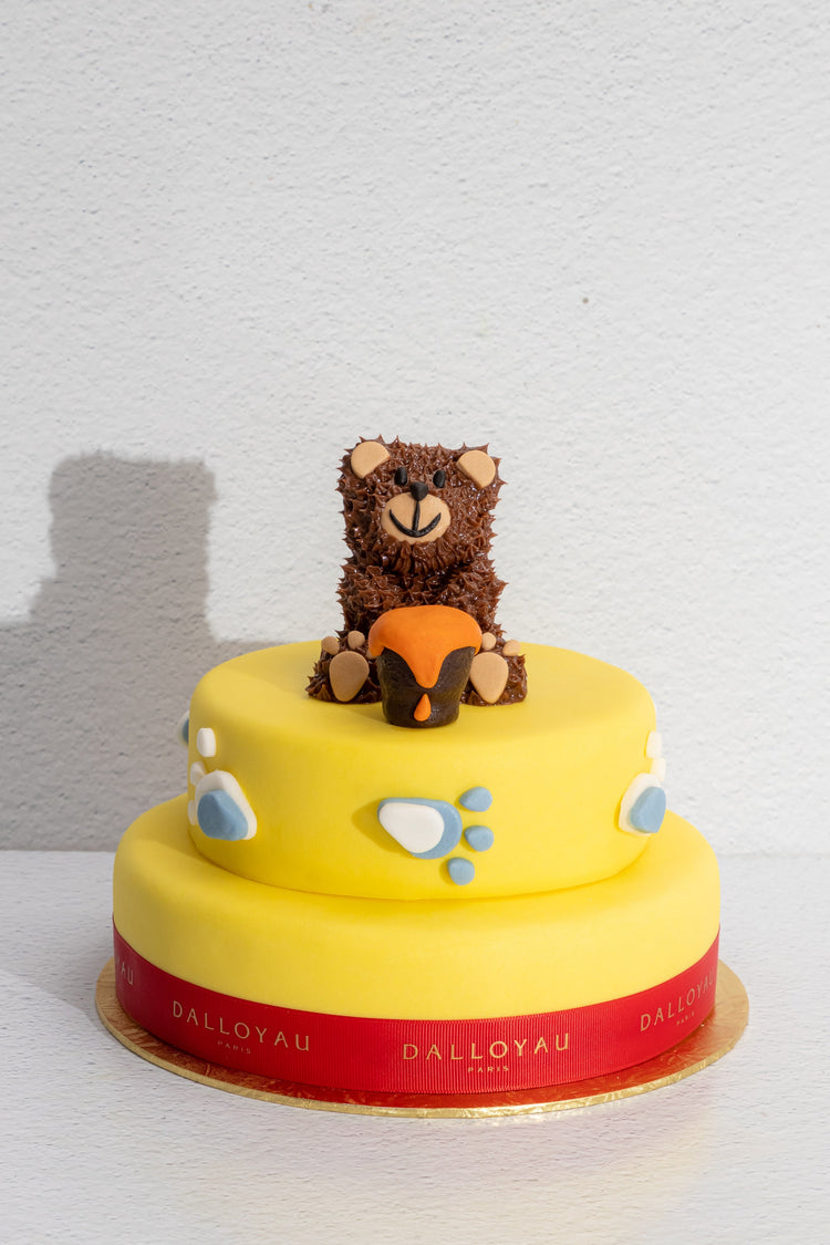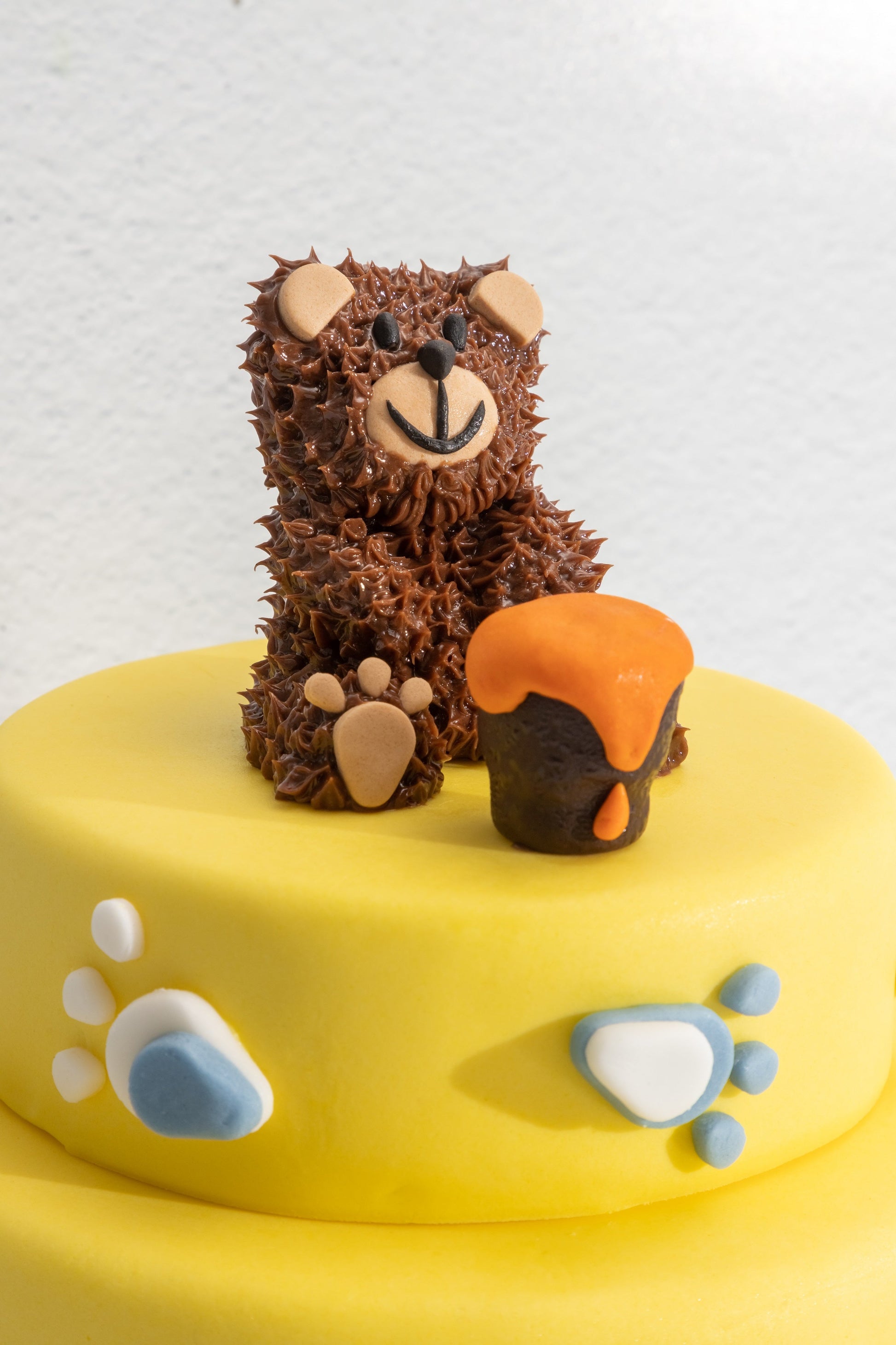 *Chocolate/banana pound cake with fondant icing, with each tier being 2.5" tall.