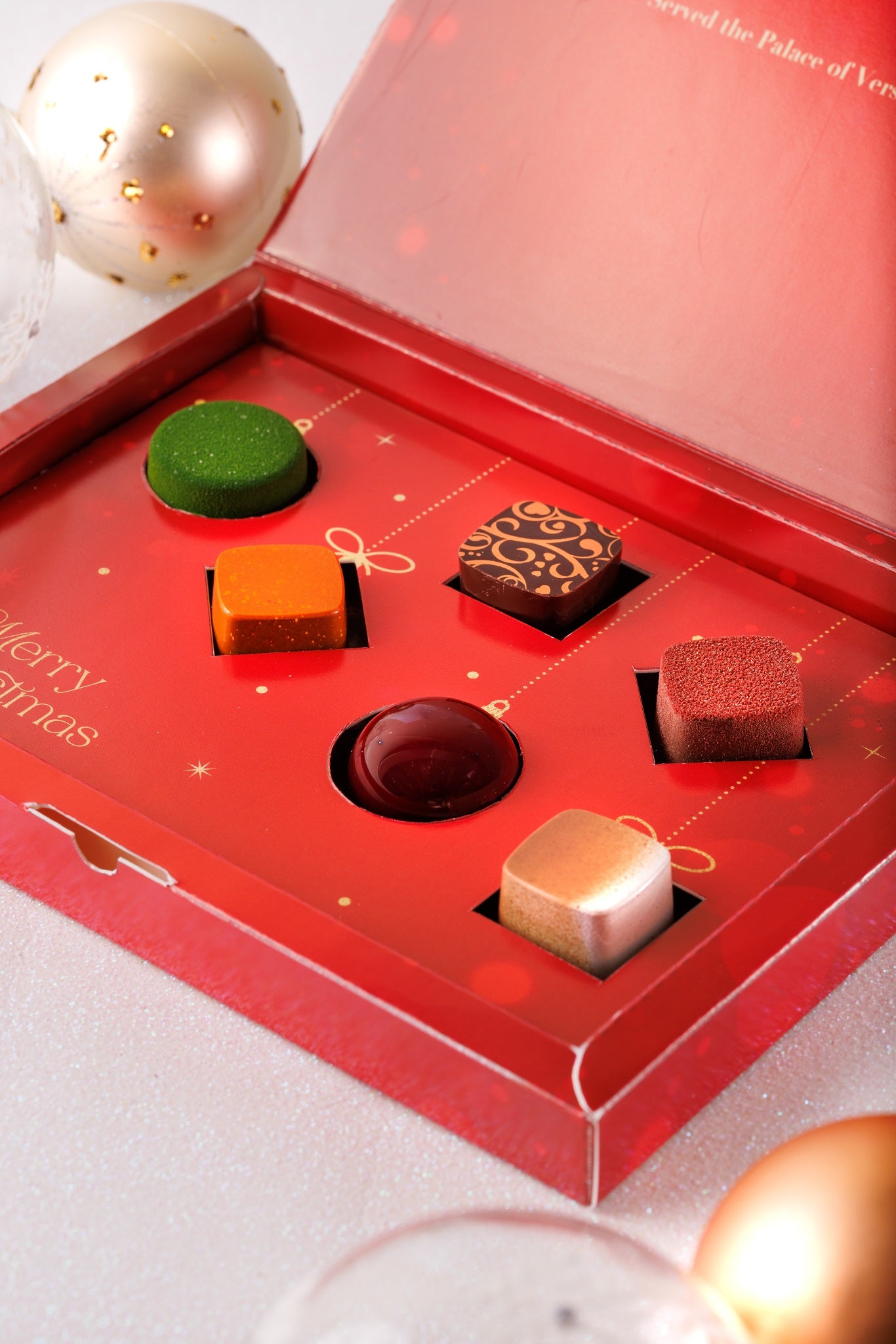 This Christmas-exclusive gift box contains six meticulously crafted chocolate bonbons, each concealing a surprising and sophisticated filling—Mint Chocolate, Black Forest, Coffee, Raspberry, Rocher, and Kumquat. Housed in an elegantly festive packaging, it is an ideal gift for both self-indulgence or gifting, promising to enchant every palate.