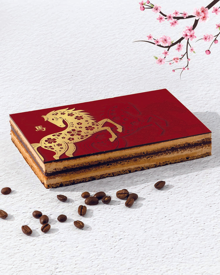 爲賀歲馬年,我們將駿馬圖像打印於經典歌劇院蛋糕之上,寓意奔騰向前,開啓新年鴻運。