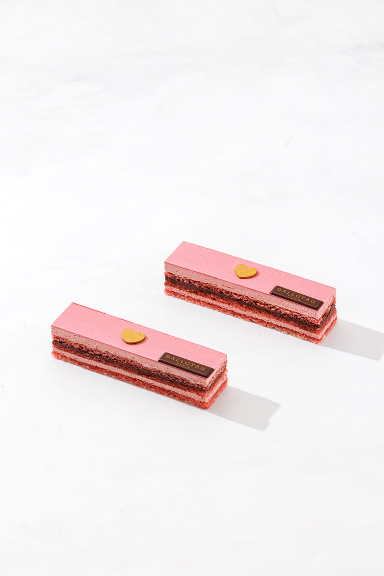 作爲歌劇院蛋糕的始創者,DALLOYAU推出情人節限定的紅桑子零陵香豆口味。恪守經典八層結構,每層均細緻纖薄且比例精準。融入香濃的紅桑子零陵香豆朱古力醬、幼滑紅桑子牛油忌廉及柔潤的粉紅杏仁海綿蛋糕,並綴以瑰麗心形朱古力裝飾,為這款經典傳世之作注入現代節日情調。